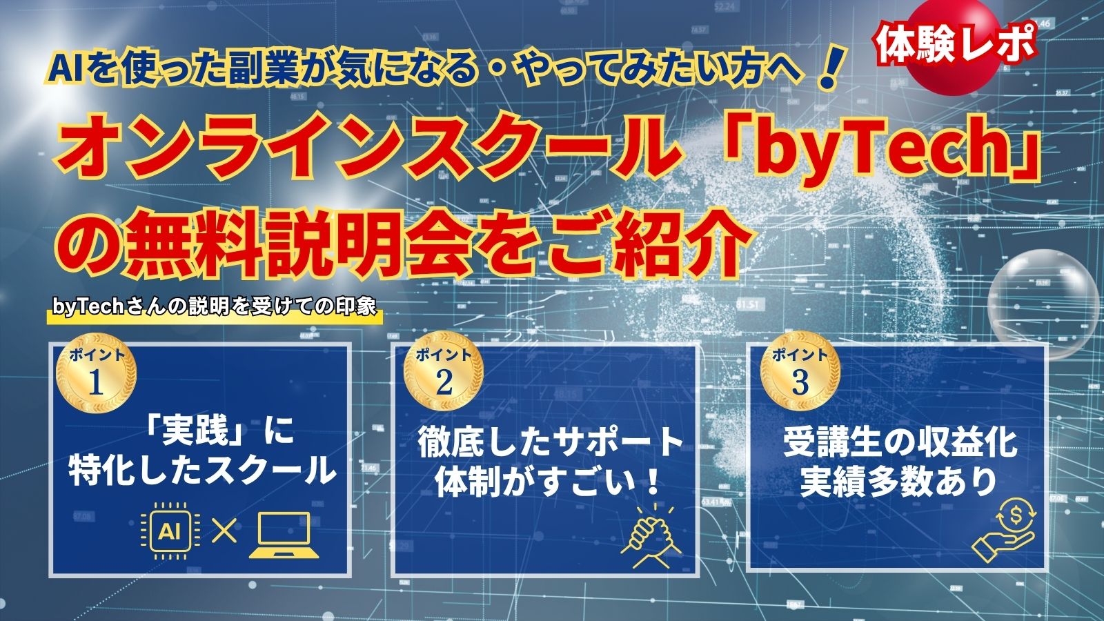 ──そんな方に向けて、今回はbyTech(バイテック)の無料説明会に参加した体験レポートをお届けします。