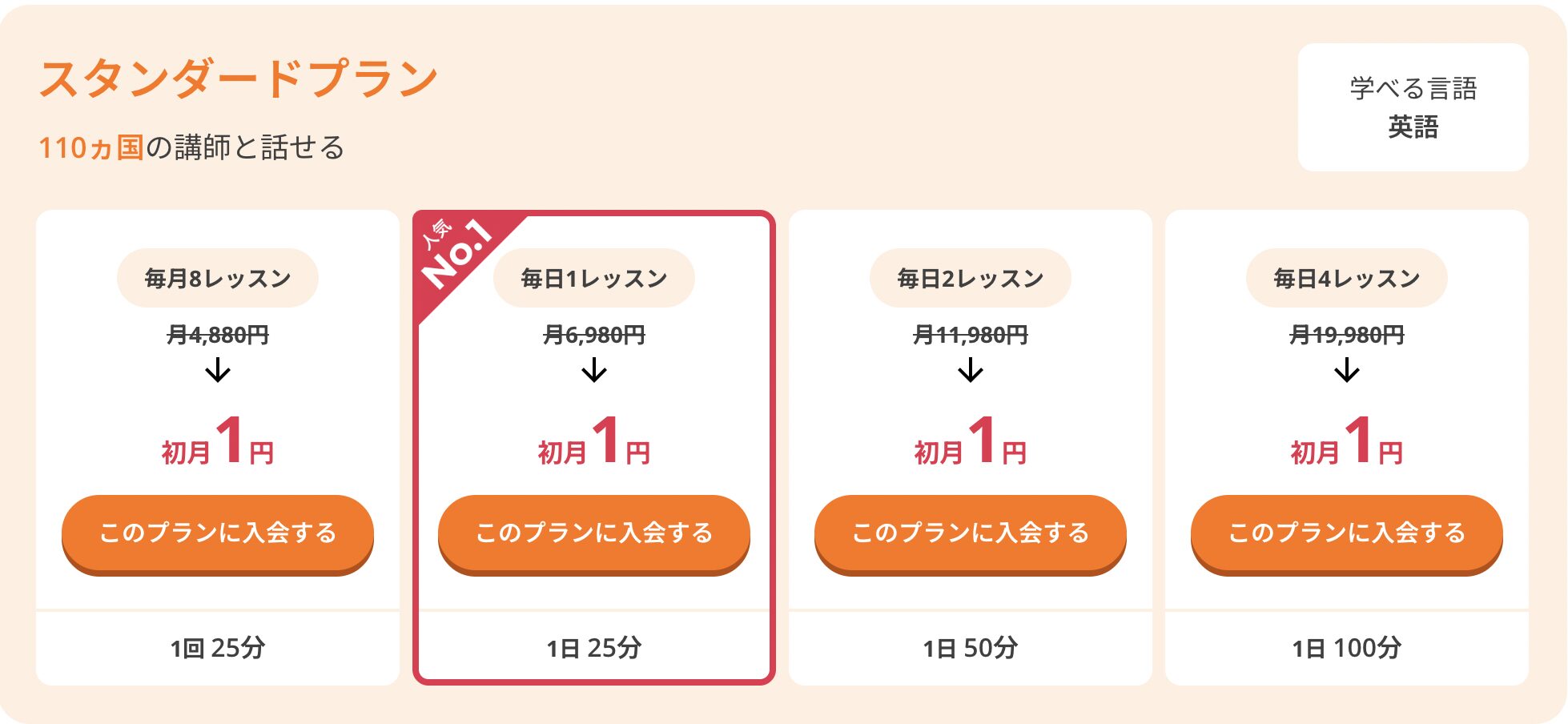 DMM英会話|スタンダードプラン 料金表(2025年8月)