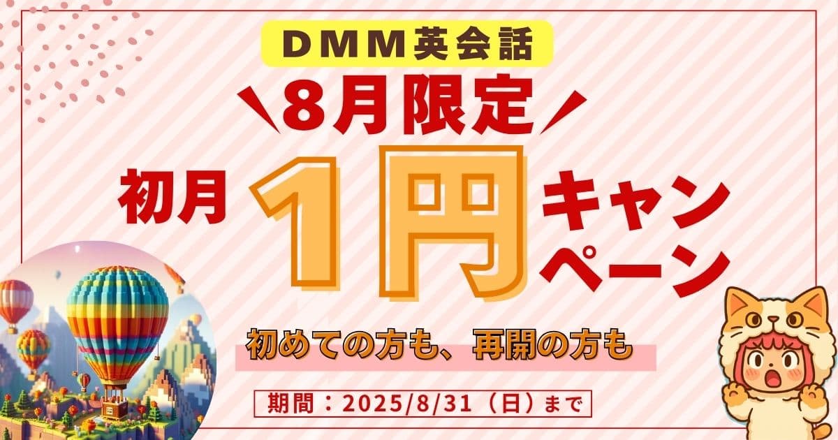 DMM英会話の対象プランが初月1円になるキャンペーンが開催中です!