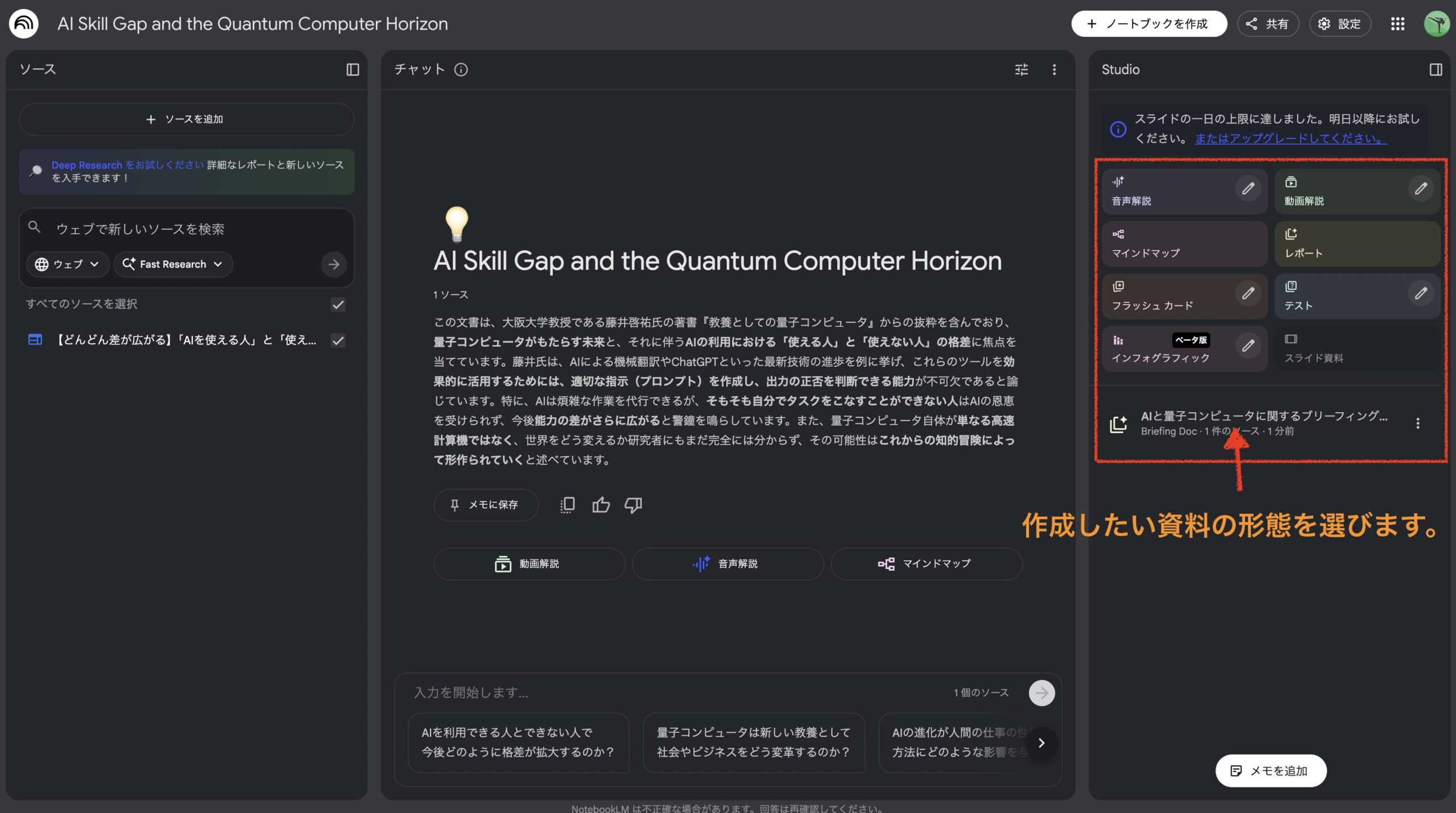 NotebookLMは、すごく簡単に操作できるので、まずはみなさん試してみてください。