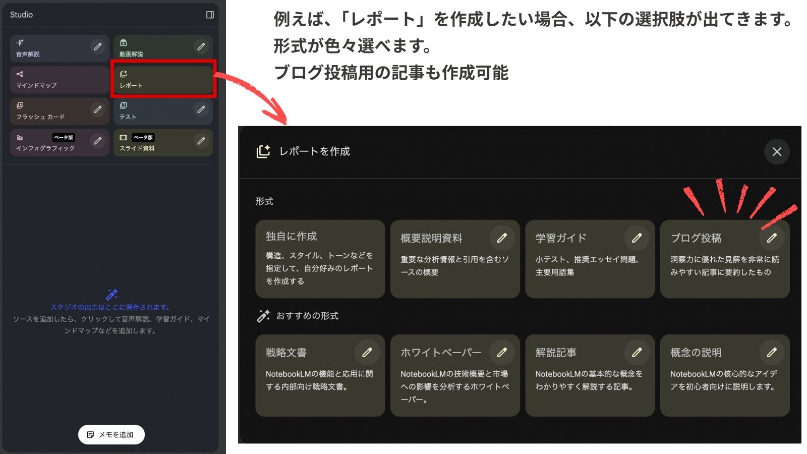 以下の選択肢がでてきます。ブログ投稿用にまとめるなども可能です!